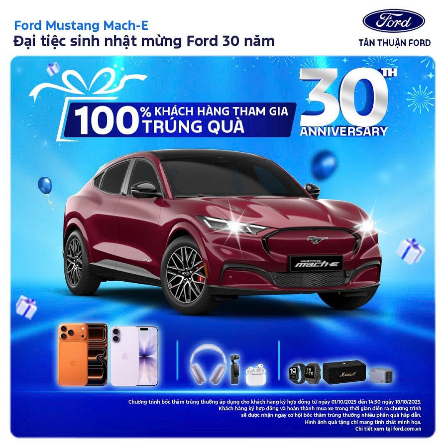 Ngày 15/8, tại sự kiện Kỷ niệm 30 năm hoạt động tại Việt Nam, Ford Việt Nam chính thức giới thiệu đến khách hàng Việt Nam mẫu xe Mustang Mach-E – mẫu xe thuần điện đầu tiên của Ford được phát triển.